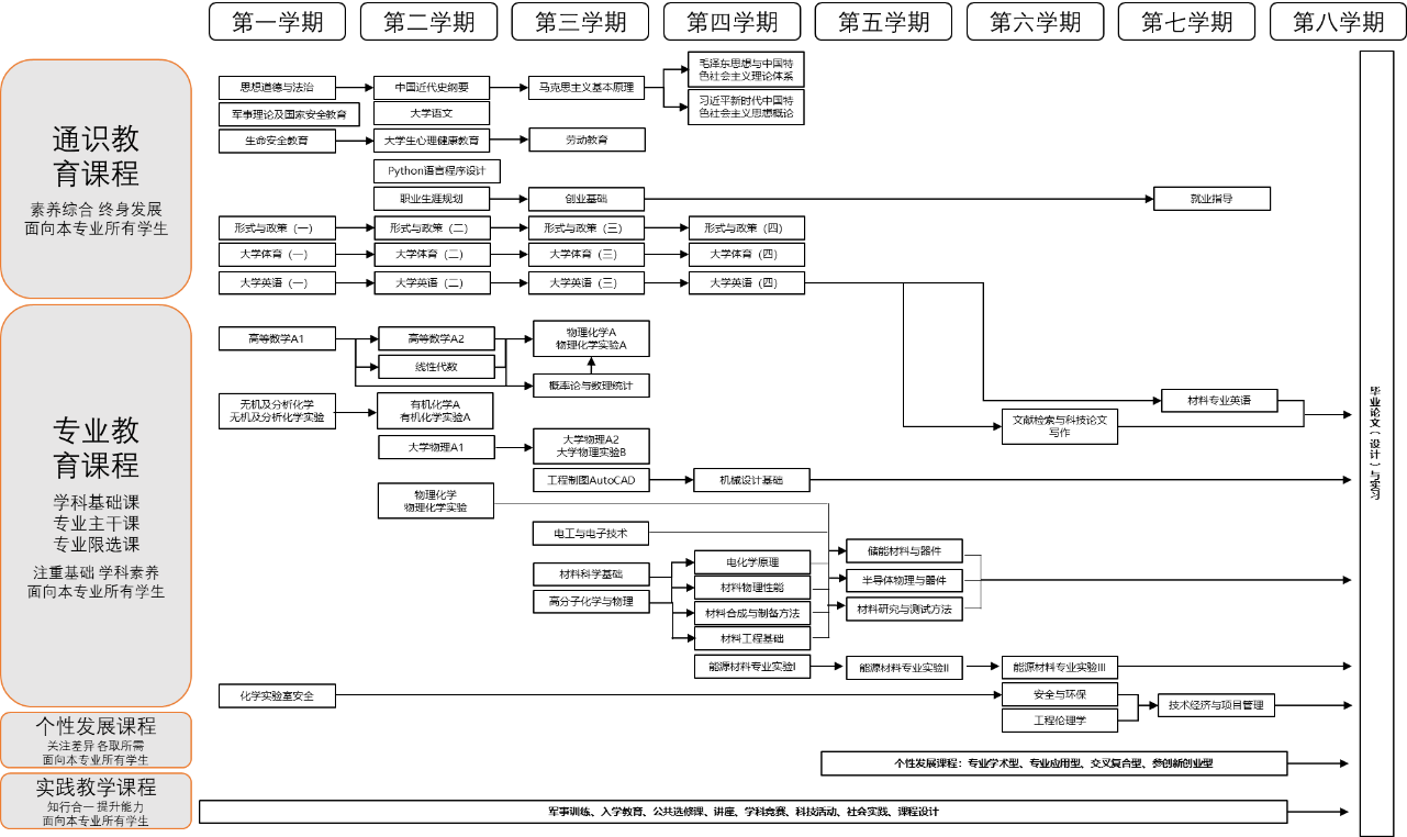 培养目标3:具有专业素养,能够规划新能源材料与器件的生产流程,鉴定产品质量,分析新能源材料与器件领域的新技术、新工艺和新材料。